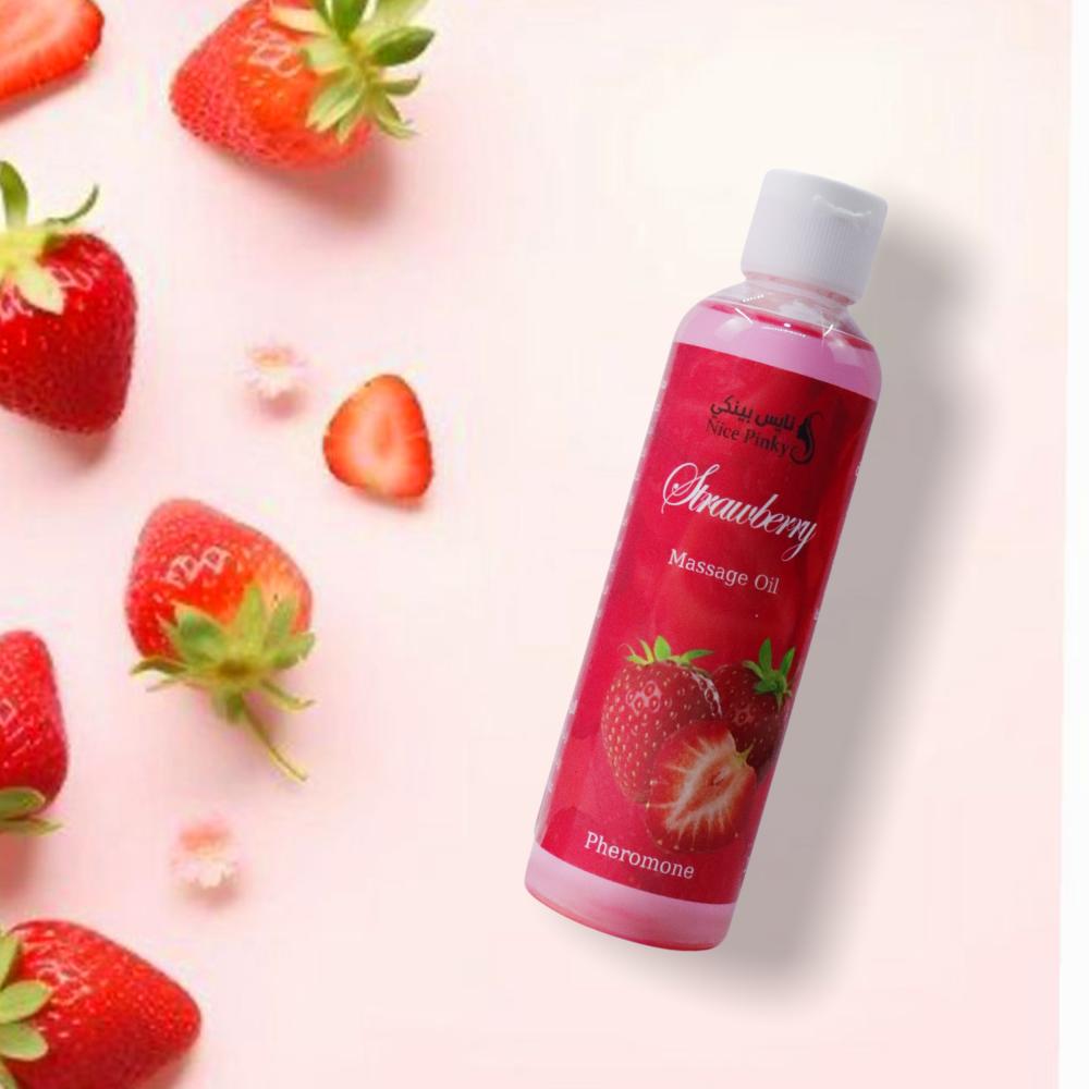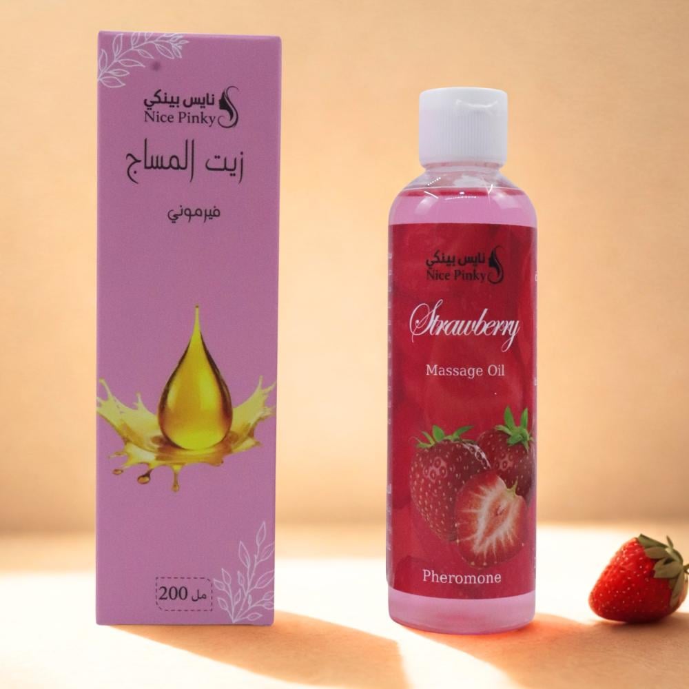 🍓 زيت المساج الفيرموني برائحة الفراولة – حلاوة الدلال والاسترخاء