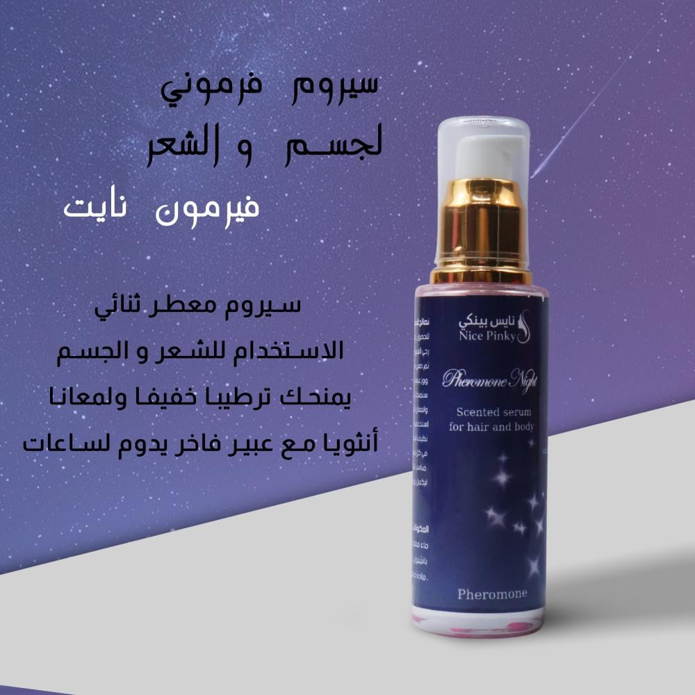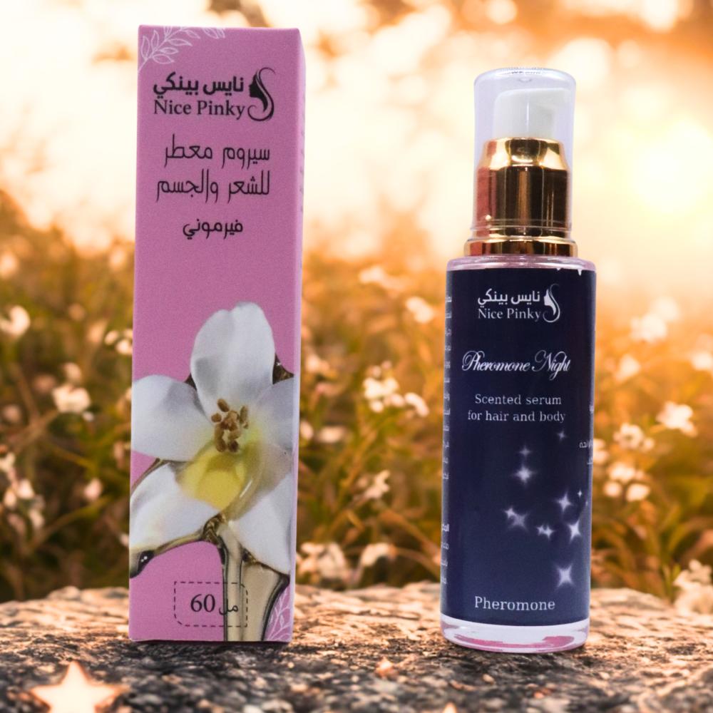 استمتعي بجاذبية لا تُقاوم مع سيروم ليلة رومانسية. تركيبة فرمونية ساحرة تمنح بشرتكِ وشعركِ ترطيبًا ناعمًا مع عطر أنثوي مغري يرافقكِ في أجمل اللحظات الخاصة.