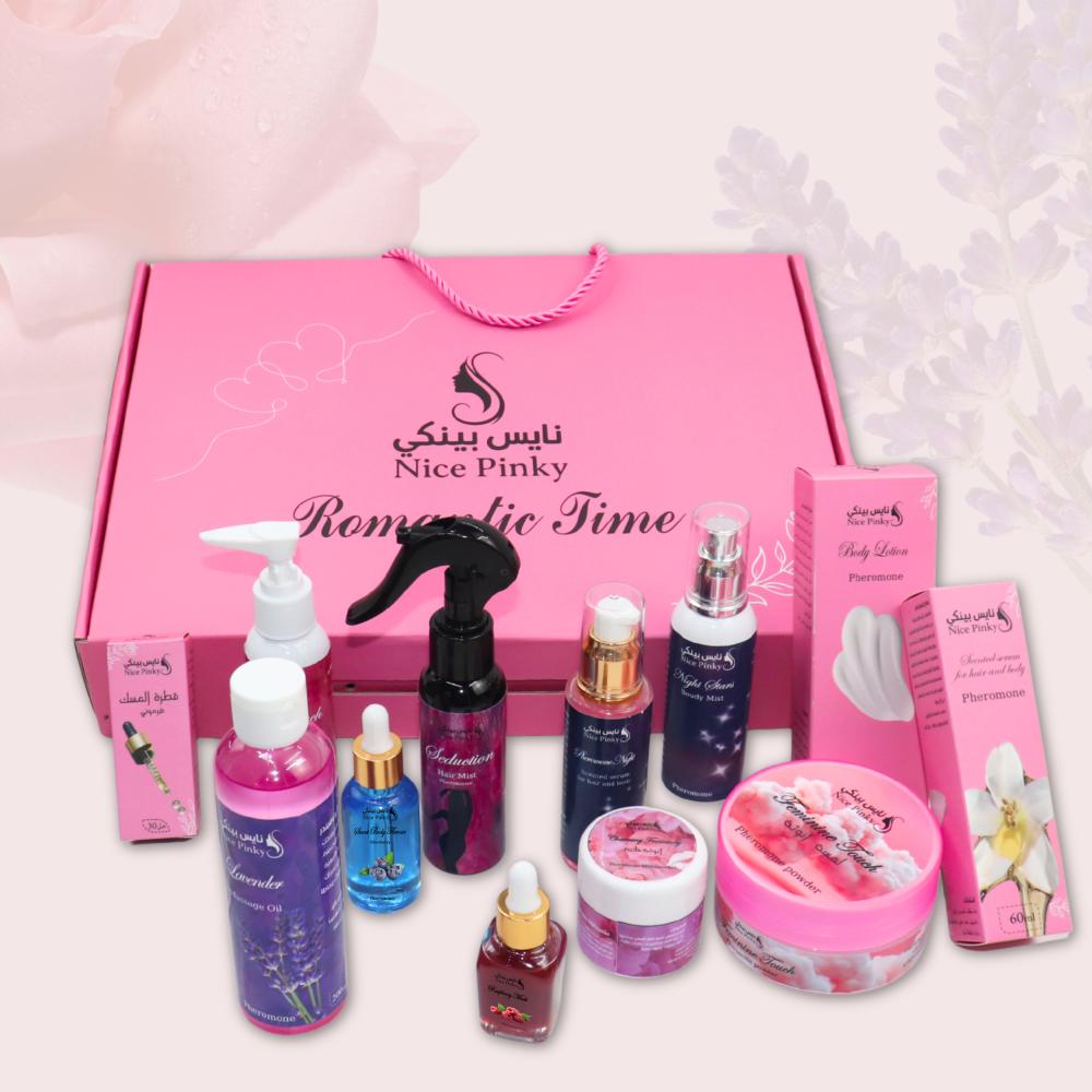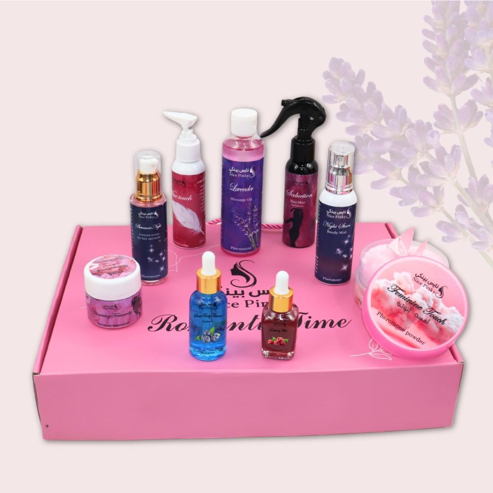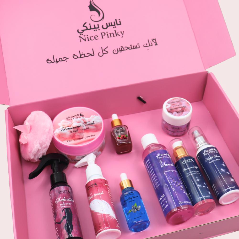 دلّلي نفسك مع مجموعة الأنوثة الكاملة من نايس بينكي، مزيج فاخر يجمع أفضل منتجات الفرمونات لتعزيز أنوثتك وجاذبيتك في كل لحظة. مجموعة متكاملة تمنحك ترطيب، عطر، ولمسة رومانسية آسرة تدوم طويلًا.