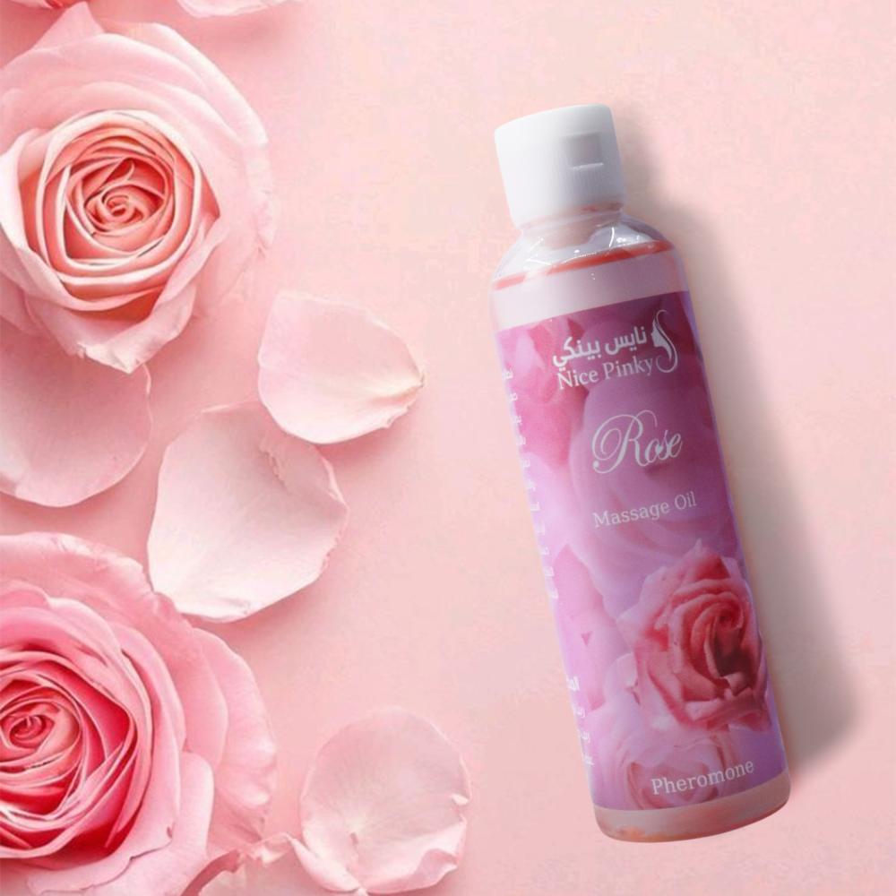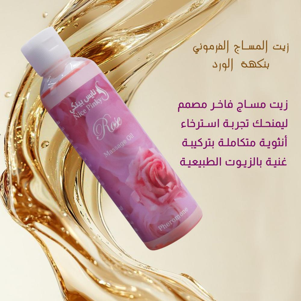 عيشي لحظات غاية في الرومانسية مع زيت المساج الفيرموني برائحة الورد من نايس بينكي. مزيج فاخر من الزيوت الطبيعية والفرمونات يمنح بشرتك ترطيبًا حريريًا ويزيد من جاذبيتك الخاصة، بينما تضيف رائحة الورد الكلاسيكية لمسة أنثوية رقيقة تبعث على الحب والدفء.